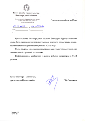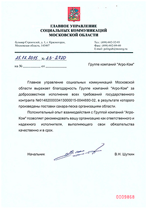 Выполнение государственного контракта по поставкам сахара-песка бюджетным организациям -