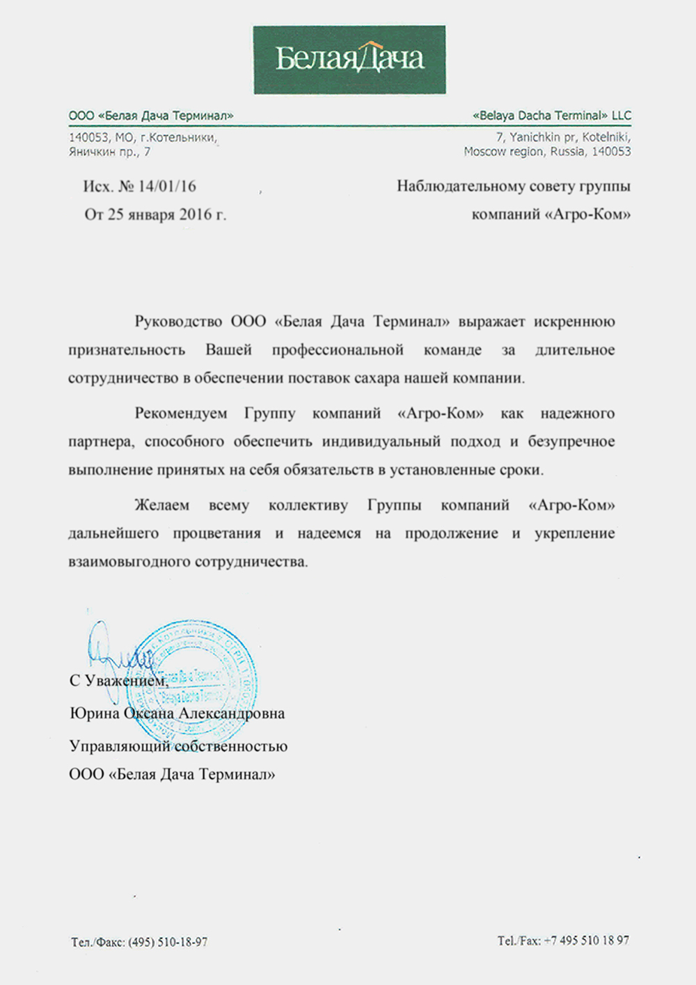 Длительное и плодотворное сотрудничество в сфере поставки сахара -